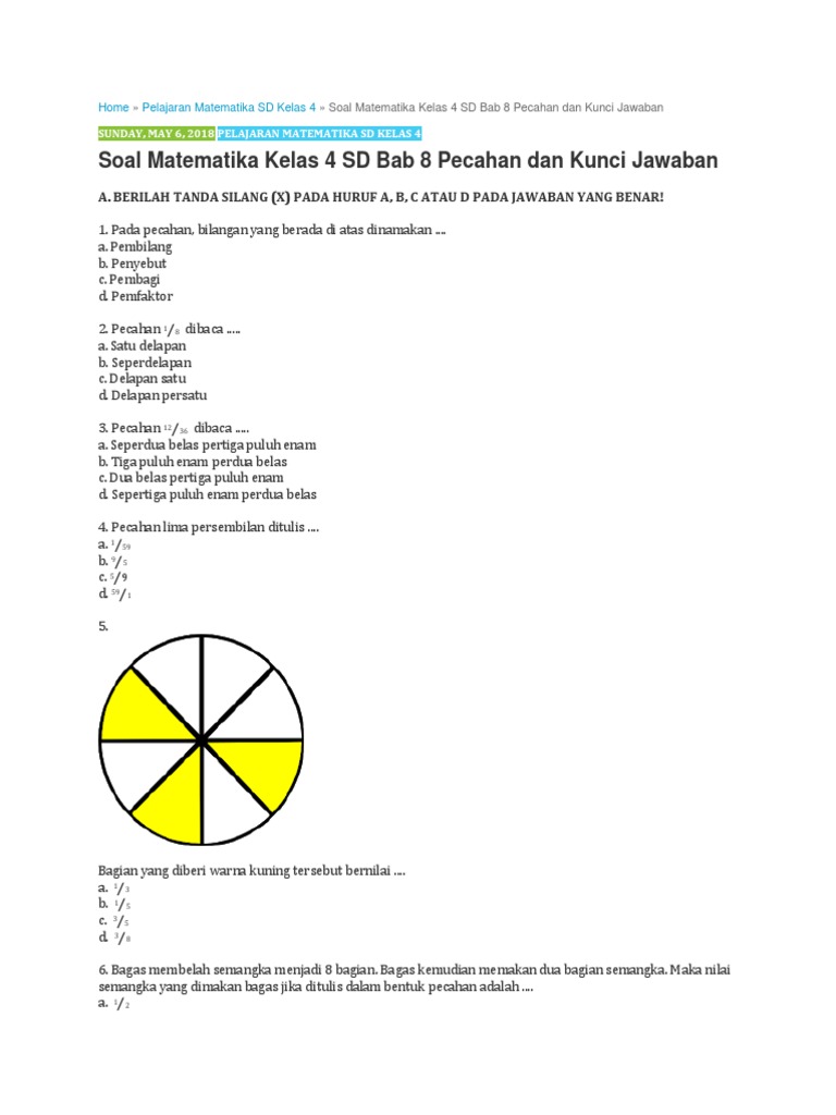 Contoh Soal Pecahan Campuran Dan Jawabannya Kelas 6 Kumpulan Soal Pelajaran 8